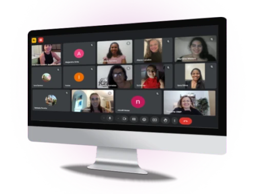 Encontros mensais temáticos em grupo ao vivo em uma sala fechada no meet