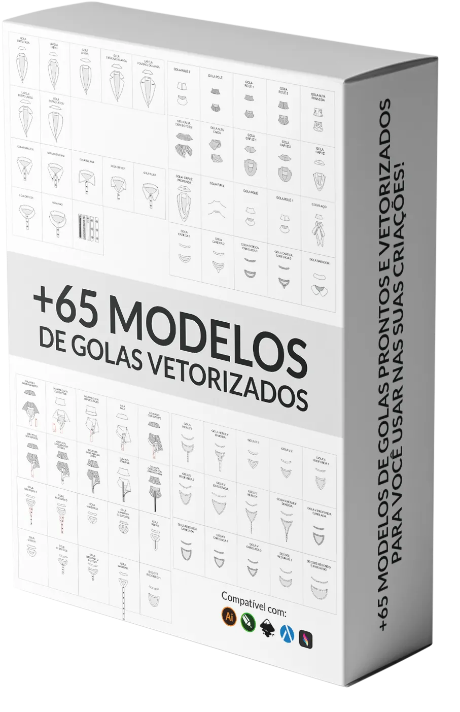 Tenha acesso a mais de 65 modelos de golas para otimizar suas criações .