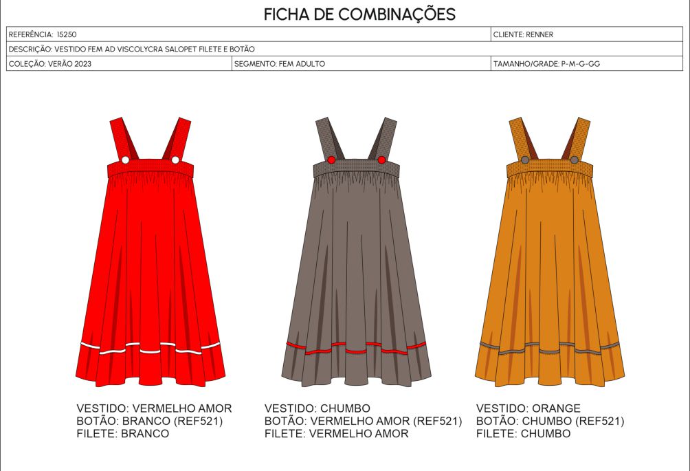 Ficha de combinações: Facilite a comunicação com sua equipe, ilustrando as variações dos modelos, e suas combinações.