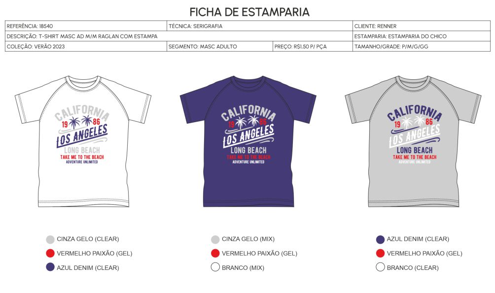 Ficha de Estamparia: Documento necessário para comunicação com parceiro estampador. Aponte cores, técnicas, combinações para evitar erros nessa etapa.