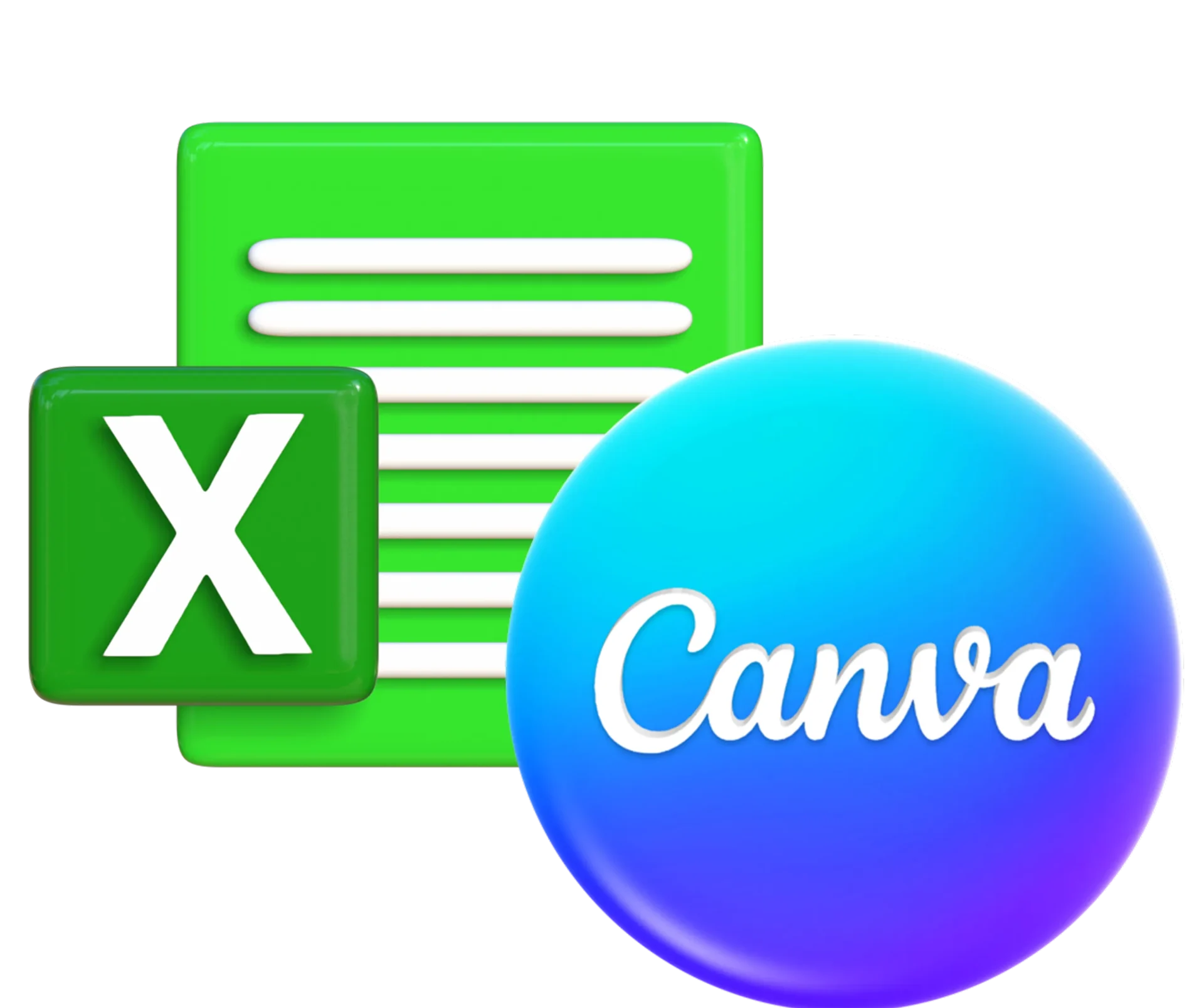 Receba também, os layouts dentro do excel e dentro do Canva!